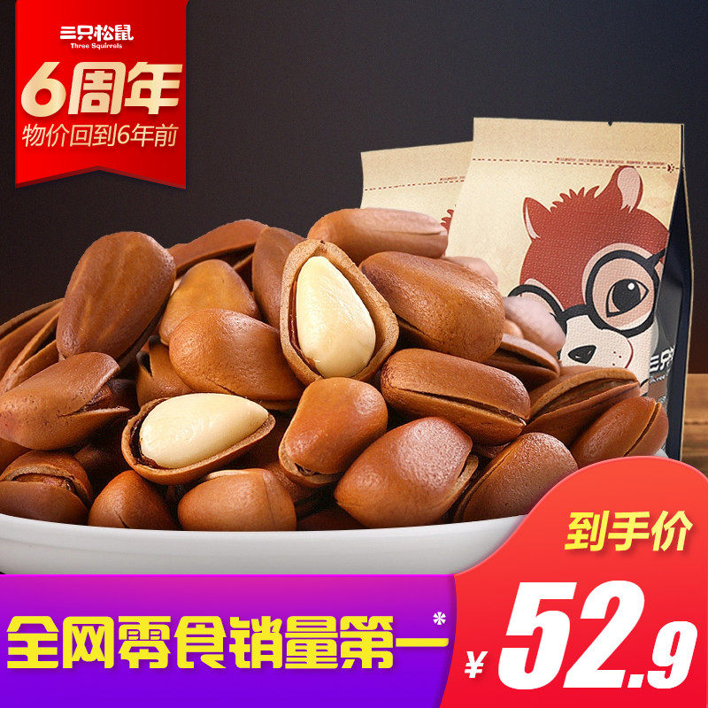 【三只松鼠_开口松子218gx2】休闲零食小吃坚果炒货特产东北松子...