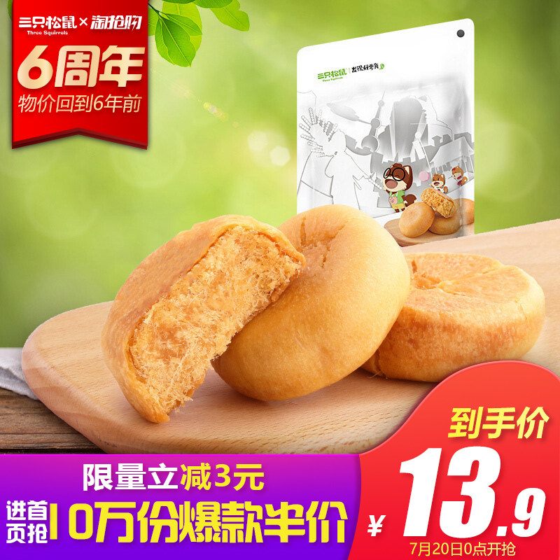 【三只松鼠_黄金肉松饼456g】休闲食品传统糕点点心肉松面包...