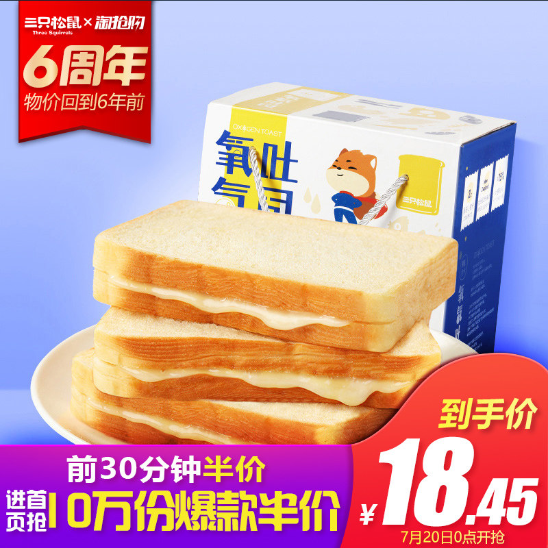 【三只松鼠_氧气吐司面包800g/整箱】夹心手撕蛋糕早餐代餐多口味...