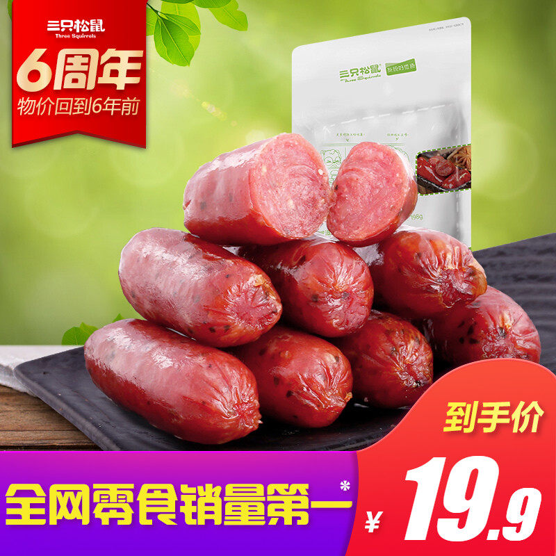 【三只松鼠_滋滋炭烤肠198g】休闲零食肉脯猪肉美味小香肠一口肠...