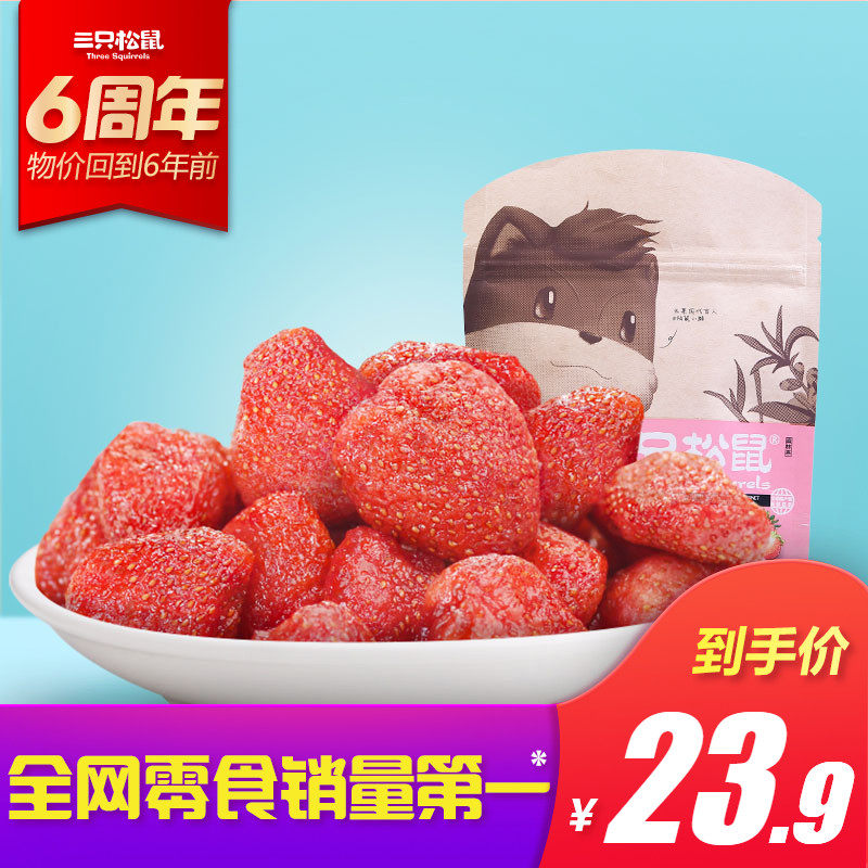【三只松鼠_草莓干106gx2袋】办公室休闲零食蜜饯果脯水果干...